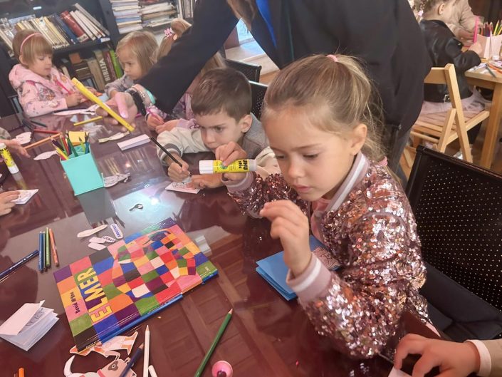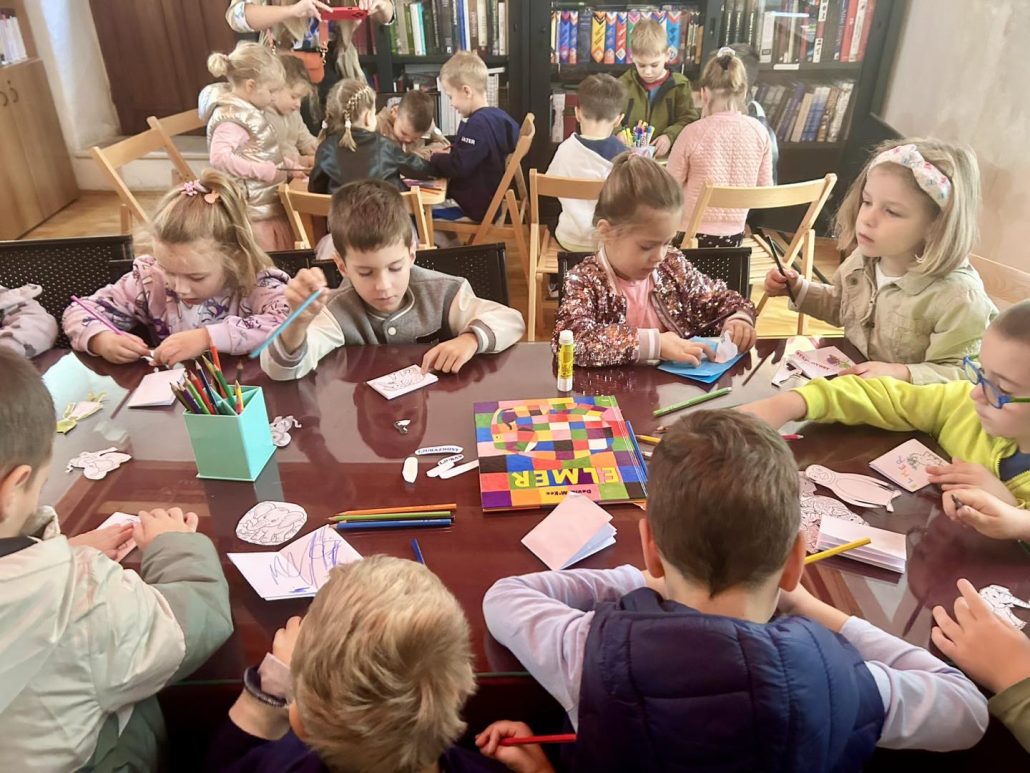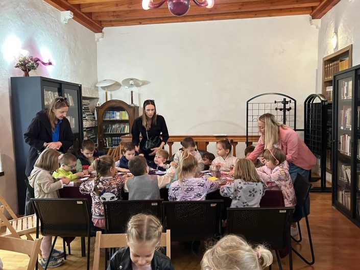 Prošli tjedan našu Knjižnicu posjetila su djeca Katoličkog dječjeg vrtića Emaus, skupine Anđeli i Koračići. Za njih smo pripremili likovne radionice.