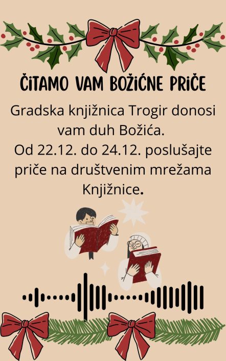 Od 22. do 24. prosinca, svakoga dana u 18.00 sati, na našim društvenim mrežama objavljujemo zvučne zapise božićnih slikovnica za djecu, koje su s puno topline i veselja čitale naše djelatnice.
