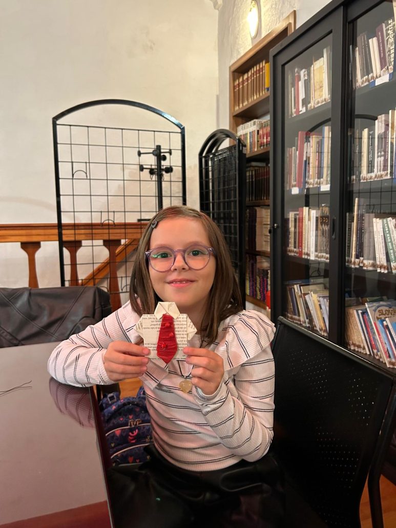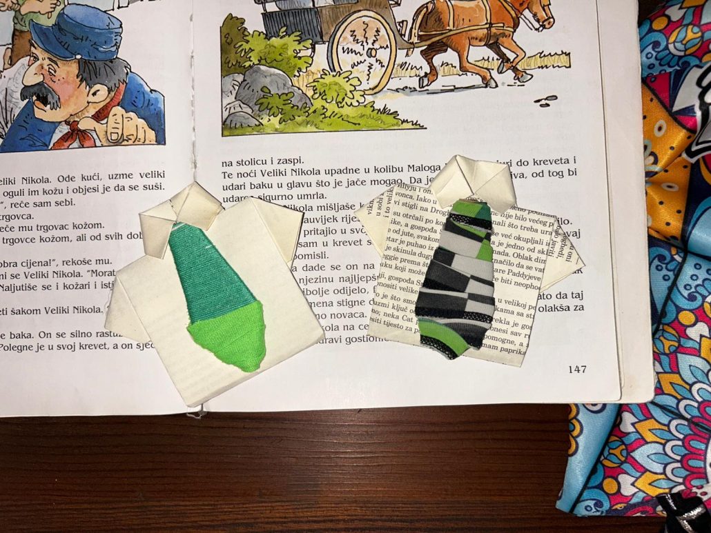 Dan kravate, najpoznatijeg hrvatskog izuma, obilježili smo kako knjižnici i dolikuje – prigodnom radionicom izrade kravate od papira. Radionicu je osmislila i vodila prof. Ivana Bilić koja je polaznike ukratko upoznala s poviješću i značenjem kravate.