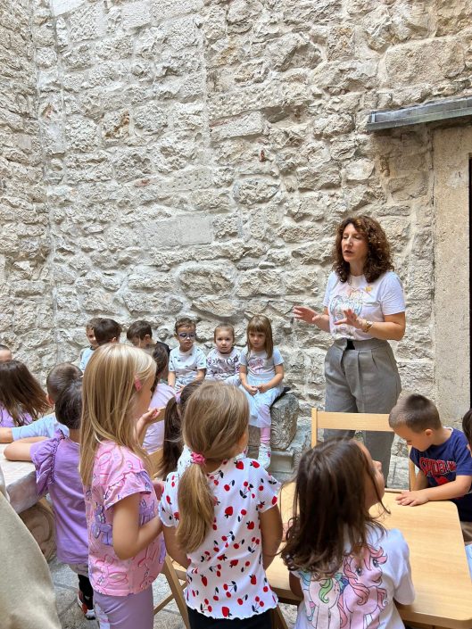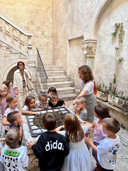 U sklopu projekta „Priče za svaki dan“ kojeg knjižnica provodi u suradnji s Dječjim vrtićem Trogir, održana je prva u nizu tematskih radionica. Tom prilikom posjetili smo neke od trogirskih palača, a svoj obilazak i razgovor završili u, nama najzanimljivijoj, palači Lucić.