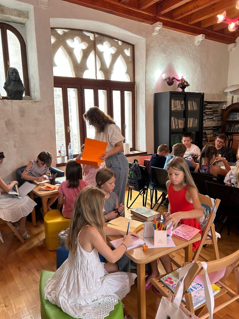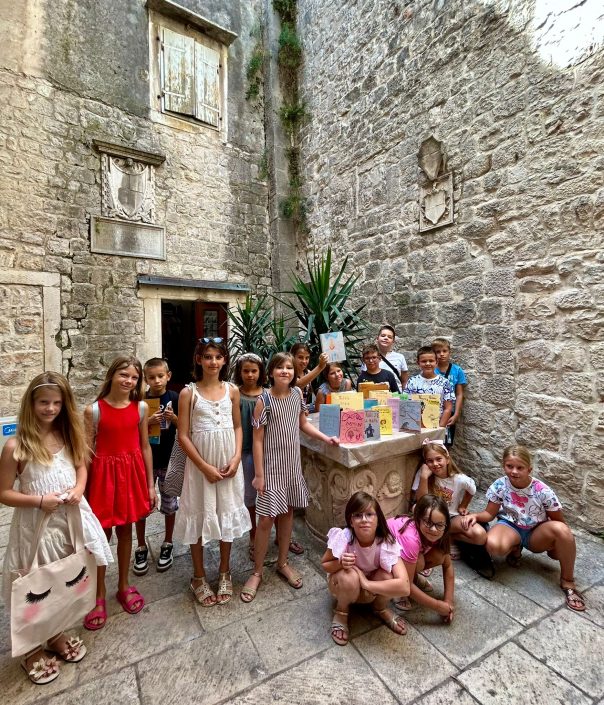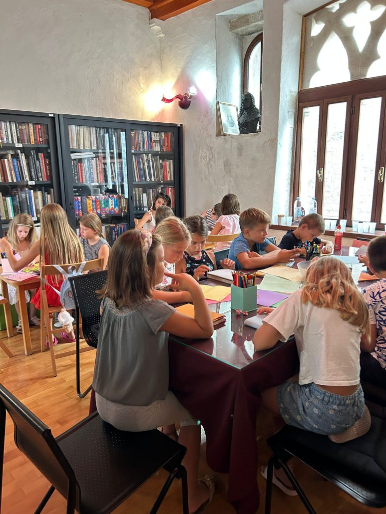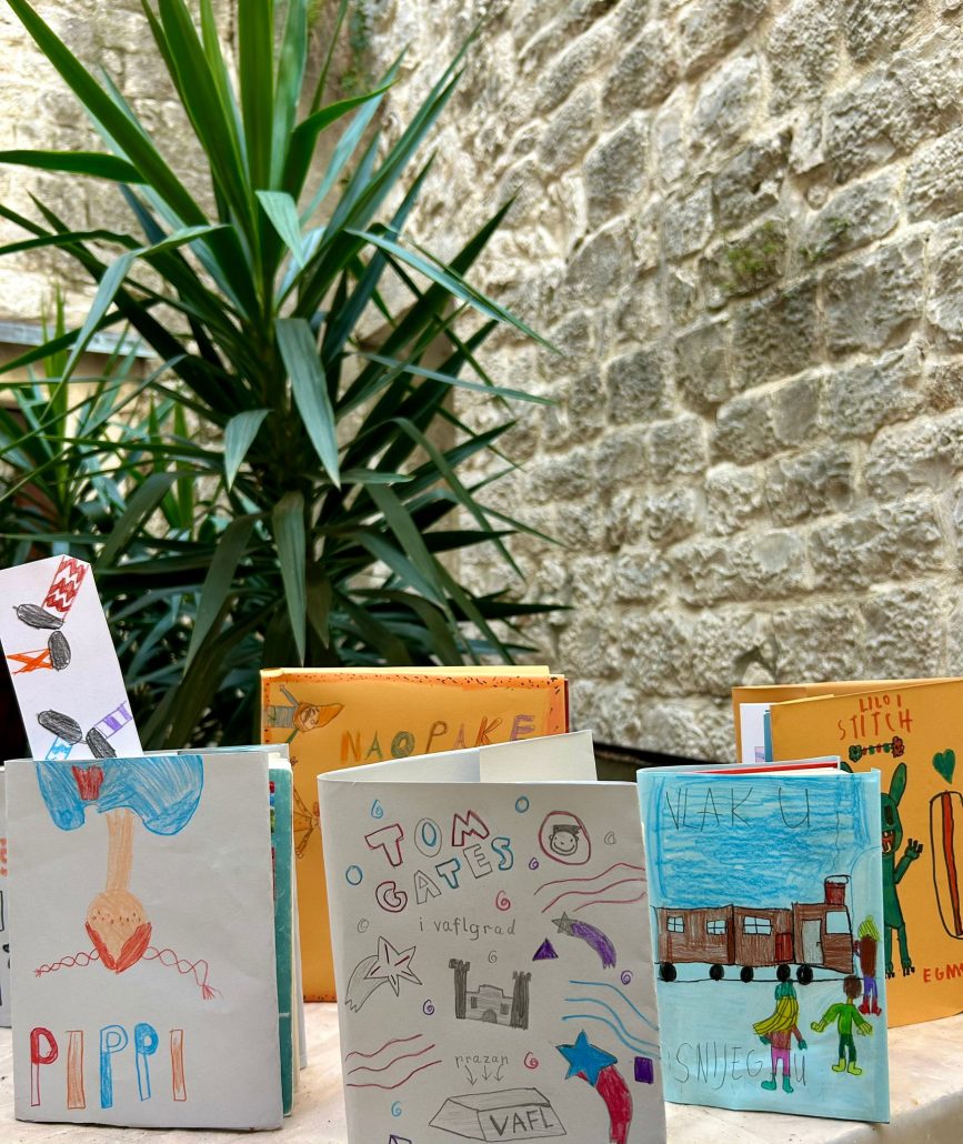 Na ljetnoj radionici u knjižnici djeca su imala priliku spojiti ljubav prema knjigama s likovnim izražavanjem! Inspirirani svojim omiljenim pričama i junacima, mali ilustratori izrađivali su novo ruho za najdraže naslove – originalne naslovnice prepune boja i detalja. Radionica je bila ispunjena šarenilom, idejama i veseljem. Gradska knjižnica Trogir pretvorila se u pravu izložbu dječje mašte.