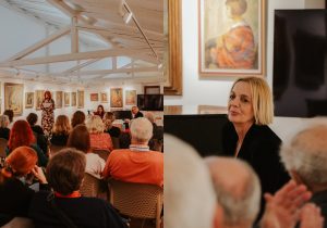 Publika je imala priliku čuti više o autorici, njezinu stvaralaštvu, prijevodima njenih knjiga na strane jezike, životu pisaca u Hrvatskoj, kao i o motivima, inspiraciji i procesu pisanja. U fokusu razgovora bile su dvije nove knjige Marine Vujčić – 365 rečenica koja u kratkim, misaonim svakodnevnim zapisima oblikuje svojevrsni književni kalendar života i dokazuje da „jedna rečenica dnevno može spasiti dan, pa i glavu“ te roman Sigurna kuća, snažan psihološki roman o ženi koja je ubila „savršenog“ muža, potresna priča o skrivenom, tihom nasilju koje žene trpe iza zatvorenih vrata. Autorica je otkrila kako je u jednom trenutku gotovo odustala od pisanja ovog zahtjevnog djela – sve dok je jedan televizijski prilog nije potaknuo da „odustane od odustajanja”… Posebno zanimljiv dio večeri bio je razgovor o kazališnoj adaptaciji ovog dojmljivog romana, premijerno izvedenoj u zagrebačkom kazalištu Gavella prije nekoliko dana.